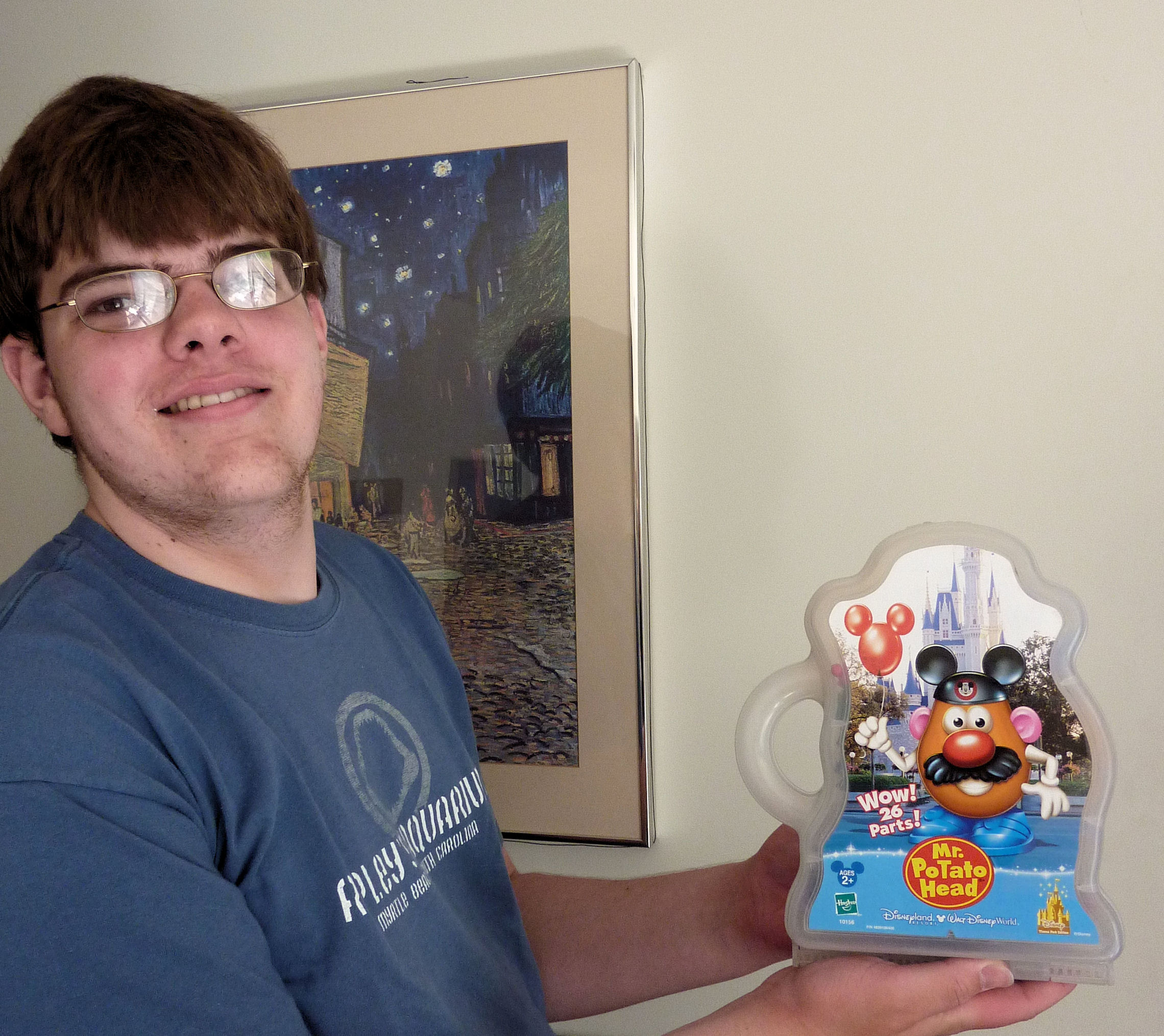 | Mr. Potato Head in Disney rain poncho. | Mr. Potato Head ready to ride Buzz Lightyear's Space Ranger Spin. |